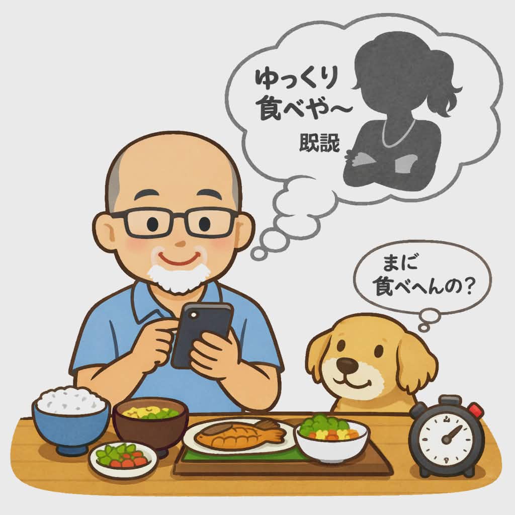 スマホは行儀が悪いと思われるかも知れませんが、SNSやニュースで暇つぶししてるわけではござんせん!これ、まごうことなく『会話』をしているんです。しかも返信するには箸をおいてスマホを操作しますわな。その間に30回以上はしっかり咀嚼しますので胃腸の負担がうんと減るのでお腹の調子もめちゃめちゃいいんです。