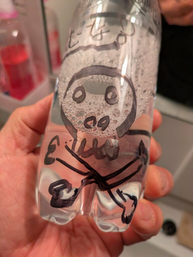 「空のペットボトルに仕事用の殺菌消毒剤を入れてきて、自分が置いたくせに炭酸水やと思って飲みかけたぞ~(笑)」